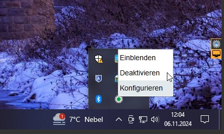 Die erfolgreiche Installation und Bereitschaft der Fernwartung ist danach hier in der Taskleiste sichtbar; über Rechtsklick darauf lässt sich dies jederzeit deaktivieren bzw. kann der Zugriff nur mit Bestätigung am PC erlaubt werden.