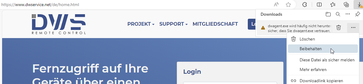 ggf. muss der Download im Browser als vertrauenswürdig akzeptiert werden: