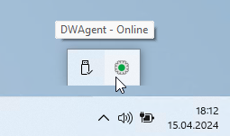 Das Symbol unten rechts zeigt eine aktive Verbindung. Hier kann ebenfalls der Agent ausgeschalten werden, sodass ihr nur bei Bedarf mit dem Rechner online erreichbar seid.