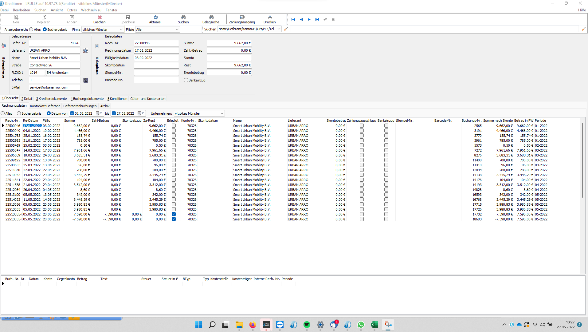 Schritt 1: Lieferschein im Einkaufsbuch heraussuchen und mit Doppelklick öffnen